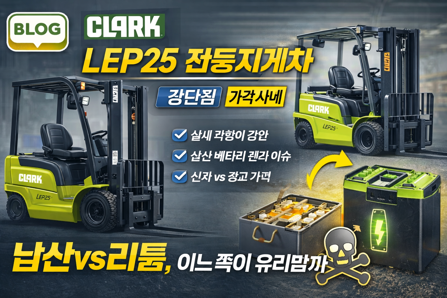 2023년식 CLARK(클라크) 전동지게차 LEP25 신차급 중고 매물 소개 (3단 마스트 / 97시간) 산업현장에서 안정성과 내구성으로 꾸준히 선택받는 브랜드 CLARK(클라크). 오늘은 실사용이 거의 없는 신차급 컨디션의 전동지게차를 소개드립니다. 이번 매물은 2023년식 클라크 LEP25 전동지게차로, ✅ 사용시간 97시간 ✅ 3단 마스트 장착(하이리프트 가능) ✅ 자동발 + 사이드쉬프트 옵션 구성 자체가 좋아서, 찾는 분들에겐 꽤 희소한 조건입니다. 1. … 더 읽기